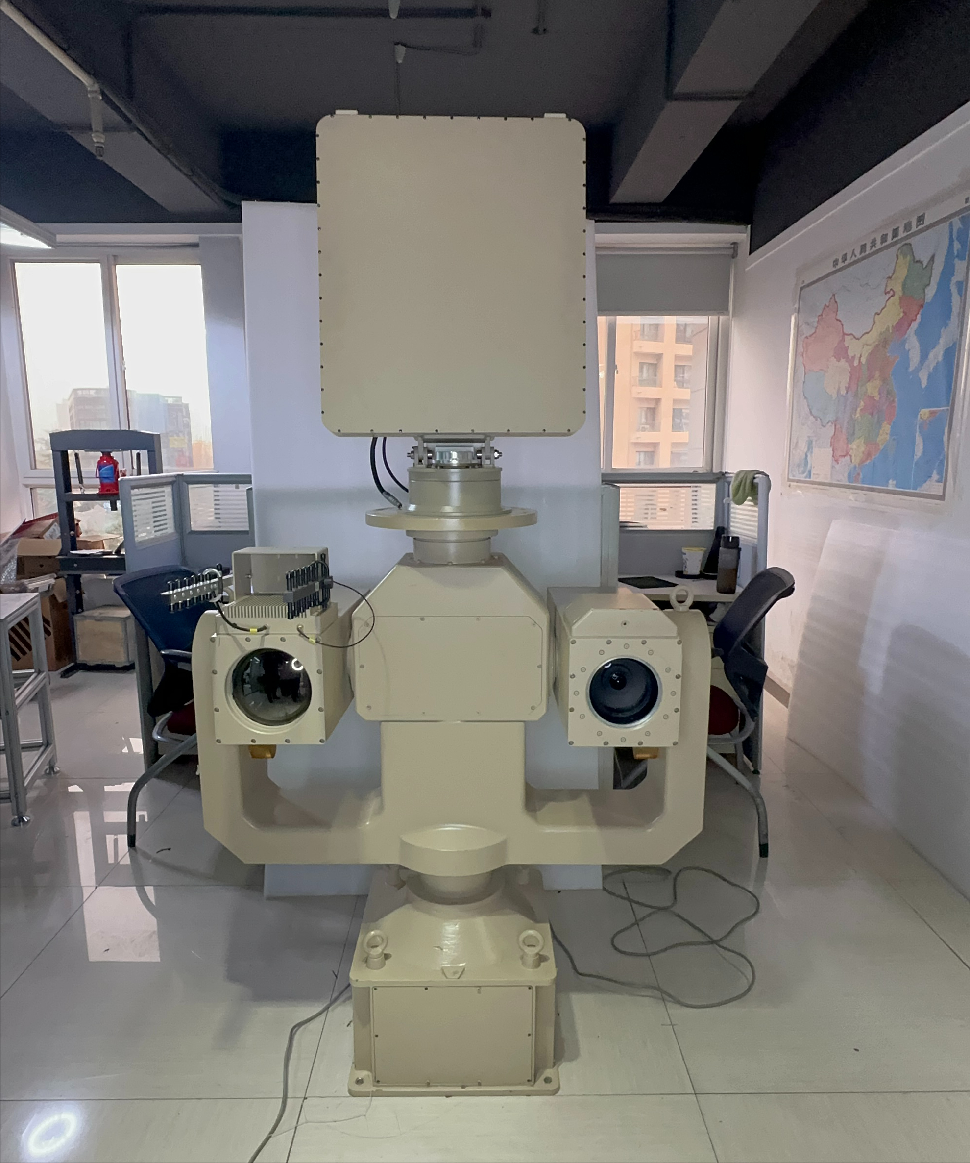光电跟踪:精细化稳定追踪:在雷达预警锁定目标后,光电跟踪层随即利用先进的图像处理技术,对目标展开精细化追踪。通过亚像素级图像处理技术,它能将轨迹预测误差精准控制在 0.5 厘米以内,哪怕是体型微小、飞行轨迹复杂且速度极快的无人机,也难以逃脱它的 “火眼金睛”。光电转台集成了可见光、红外与激光雷达,并配备高灵敏度探测器,能够在 - 40℃至 65℃的极端环境里,敏锐捕捉 0.1℃温差的目标。搭配高精度伺服转台,针对 0.5㎡目标可实现厘米级的动态追踪。在面对复杂的环境干扰时,该系统通过时空同步算法,将多源数据融合误差校准至毫米级,确保了对目标的稳定跟踪和准确识别,为后续的激光打击提供了可靠的目标信息。