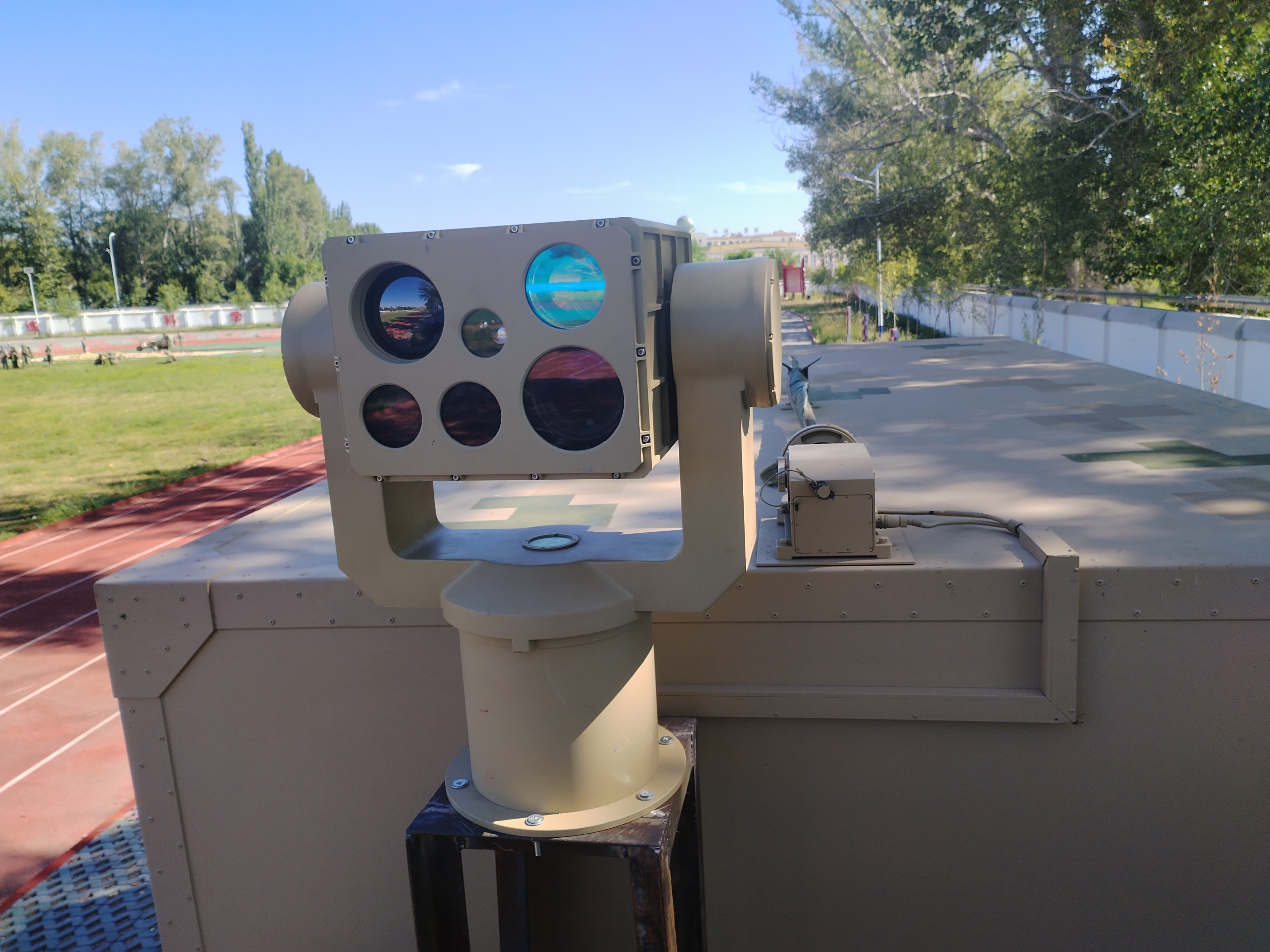光电跟踪:精细化稳定追踪:在雷达预警成功锁定目标后,光电跟踪系统随即迅速启动。它利用先进的图像处理技术,对目标展开精细化追踪。通过亚像素级图像处理技术,能将轨迹预测误差精准控制在 0.5 厘米以内,即便是体型微小、飞行轨迹复杂多变且速度极快的无人机,也绝无可能逃脱它的 “火眼金睛”。光电转台集成了可见光、红外与激光雷达,并配备高灵敏度探测器,能够在 - 40℃至 65℃的极端环境里,敏锐捕捉 0.1℃温差的目标。搭配高精度伺服转台,针对 0.5㎡目标可实现厘米级的动态追踪。在面对复杂的环境干扰时,该系统通过时空同步算法,将多源数据融合误差校准至毫米级,确保了对目标的稳定跟踪和准确识别,为后续的激光打击提供了坚实可靠的目标信息。
