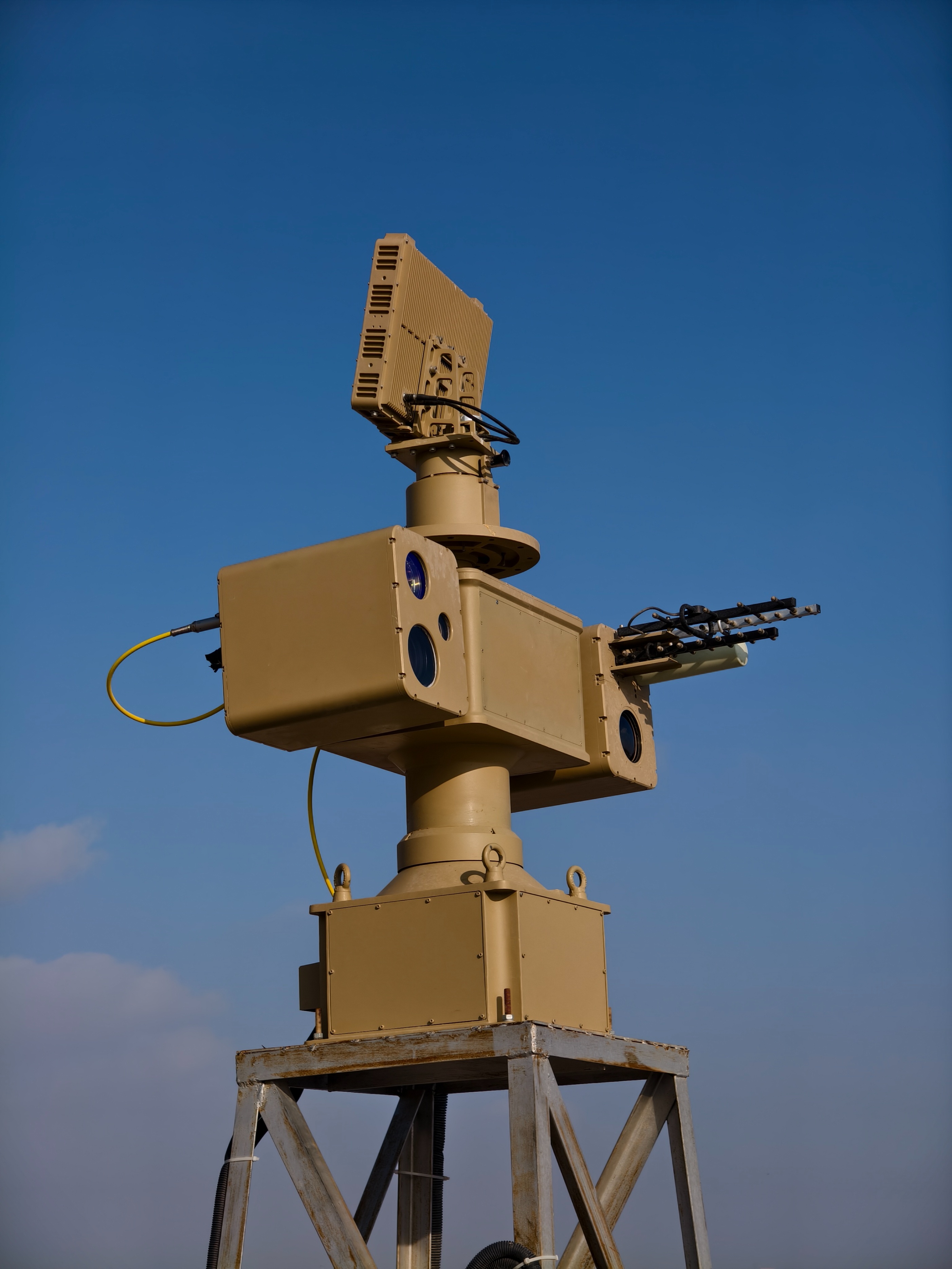 精准打击的核心底气,源于全链路技术的协同突破。设备采用“雷达探测+光电跟踪”复合架构,雷达可在300米范围内快速搜索目标,结合红外热成像与可见光,能对0.5m×0.5m的微小目标实现动态追踪。针对低速小型无人机的飞行特性,系统搭载智能预测算法,可提前预判轨迹,确保跟瞄精度。核心激光模块采用模块化设计,通过光束整形技术实现能量精准聚焦,在50-350米有效毁伤距离内,能快速熔毁无人机发动机、导航模块等关键部件,实现“发现即摧毁”。